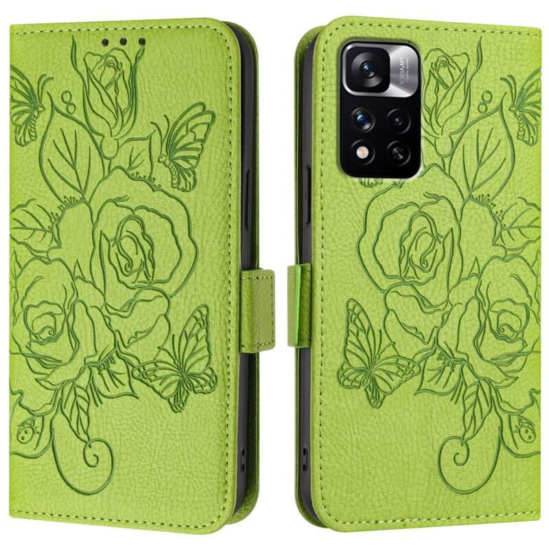 Για Redmi Note 11 Pro + 5G / 12 Pro 4G Παγκόσμια ανάγλυφο Rose RFID Anti-theft Δερμάτινη θήκη τηλεφώνου (πράσινο)