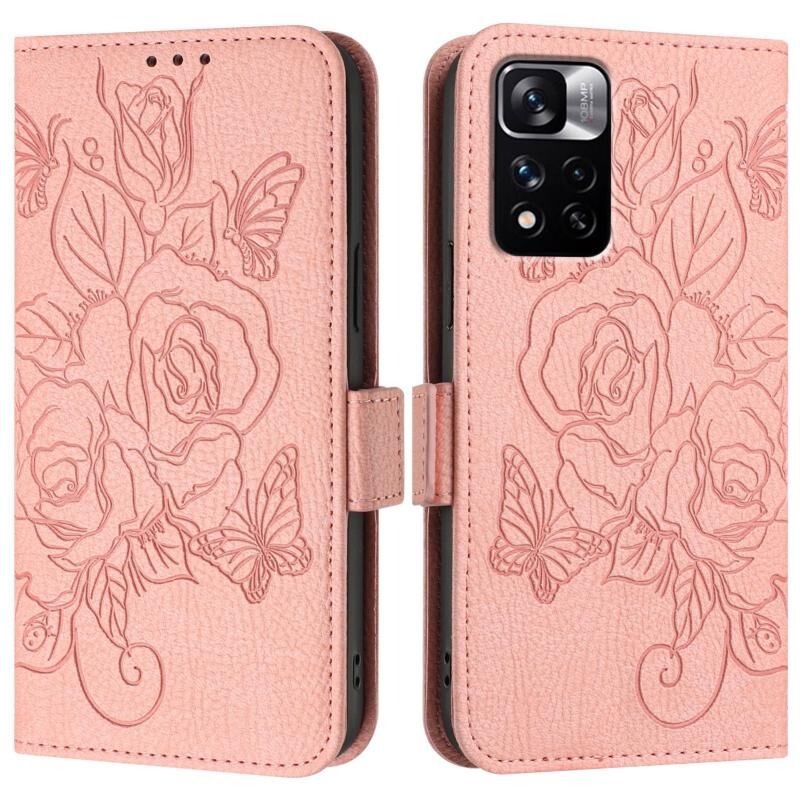 Για Redmi Note 11 Pro + 5G / 12 Pro 4G Παγκόσμια ανάγλυφο Rose RFID Anti-theft Δερμάτινη θήκη τηλεφώνου (ροζ)