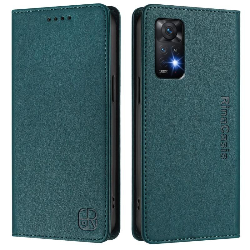 Θήκη τηλεφώνου από δέρμα με μαγνητική απορρόφηση και διπλή πτύχωση για Redmi Note 11 Pro 5G / 4G / Global RC01 (Μέντας Πράσινο)