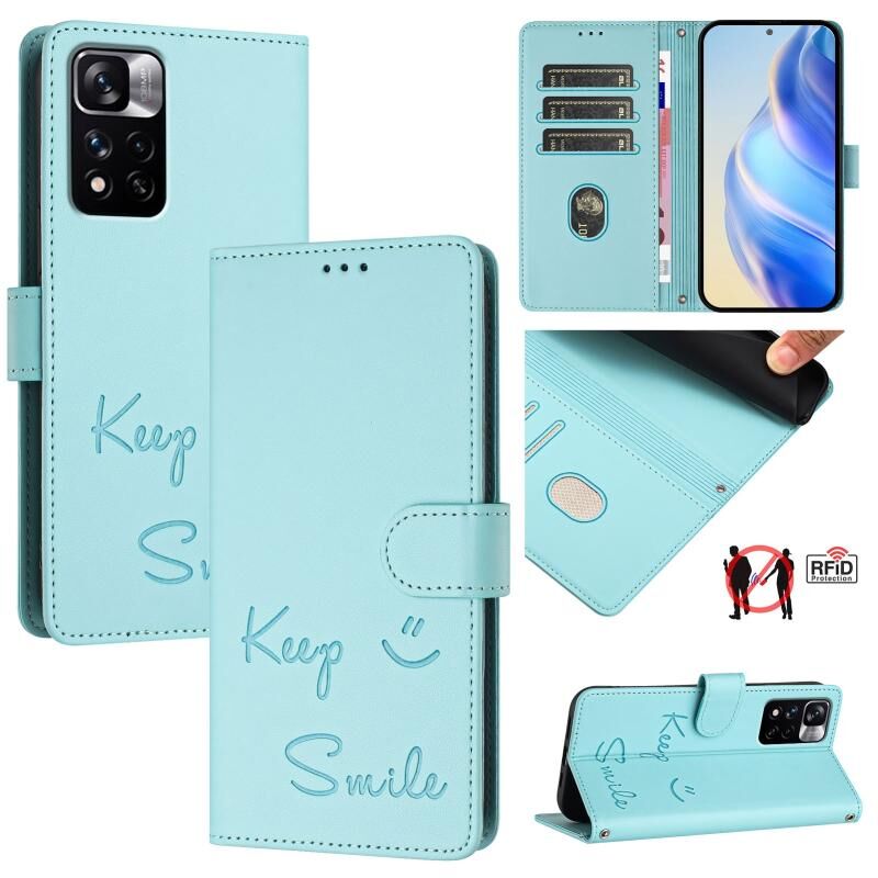 Για Redmi Note 11 Pro 5G / 4G Παγκόσμια χαμόγελο ανάγλυφο RFID δερμάτινη θήκη τηλεφώνου (πράσινο χρώμα)