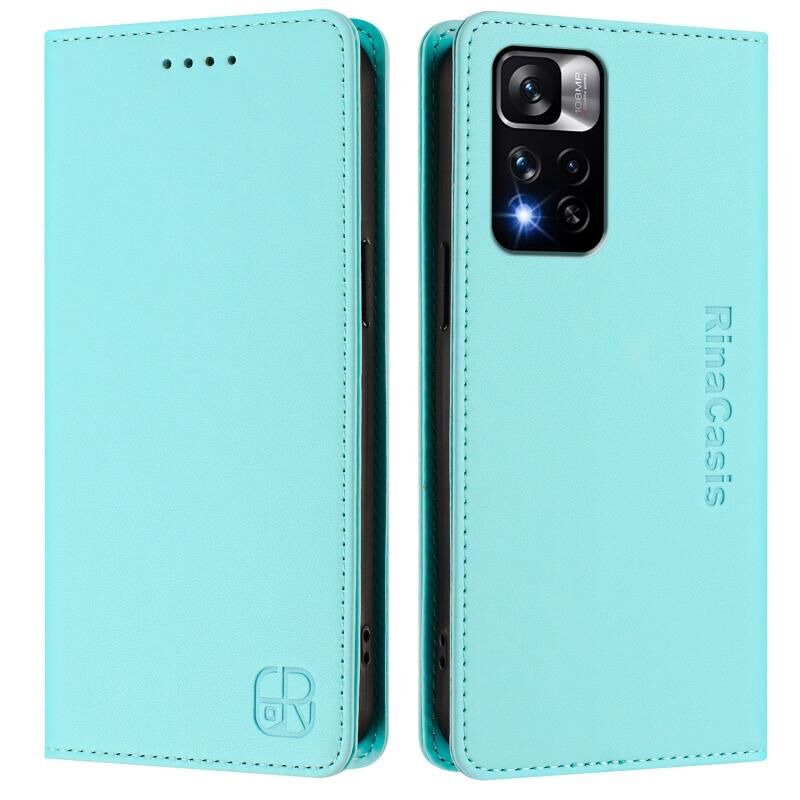 Θήκη τηλεφώνου από δέρμα με μαγνητική απορρόφηση και διπλή πτύχωση για Redmi Note 11 Pro+ 5G European RC01 (Μέντας Πράσινο)