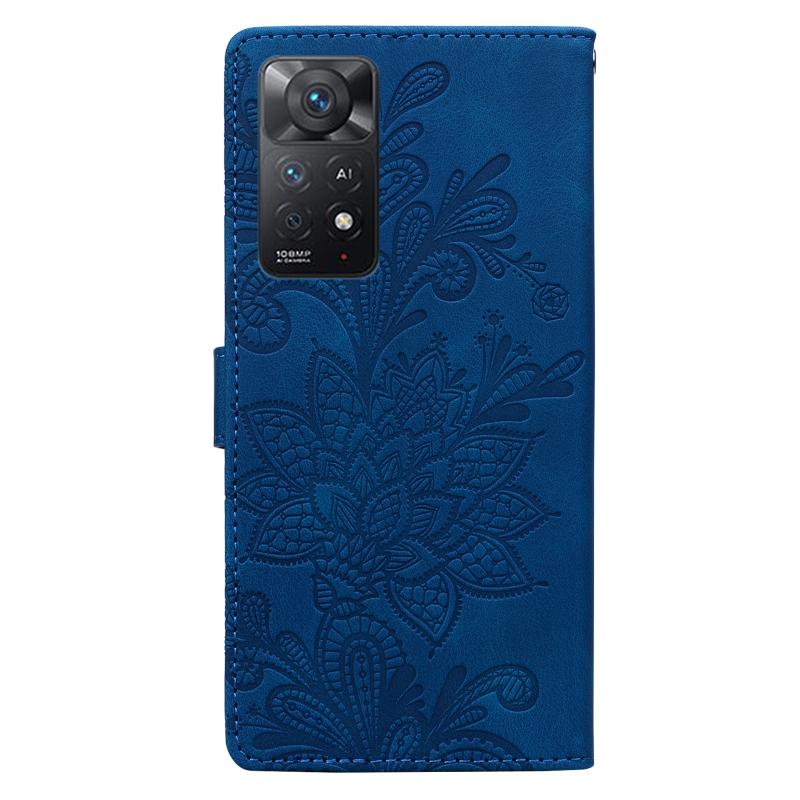 For Redmi Note 11 Pro 5G Lace Floral Embossed Magnetic Buckle PU Phone Case With Wrist Strap(Blue)