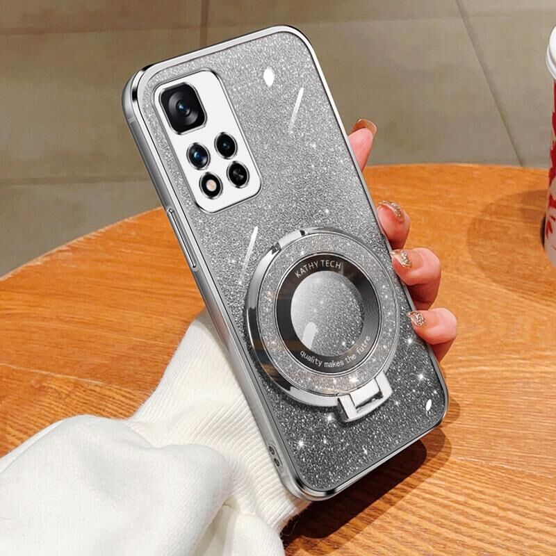 Για Redmi Note 11 Pro + 5G επιμεταλλωμένο διαβάθμιση Glitter στρογγυλή κάτοχος TPU τηλέφωνο υπόθεση (ασημί)