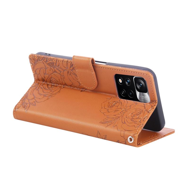For Redmi Note 11 Pro+ Rose Flower Embossed 3-Card Slots Leather Phone Case(Brown)