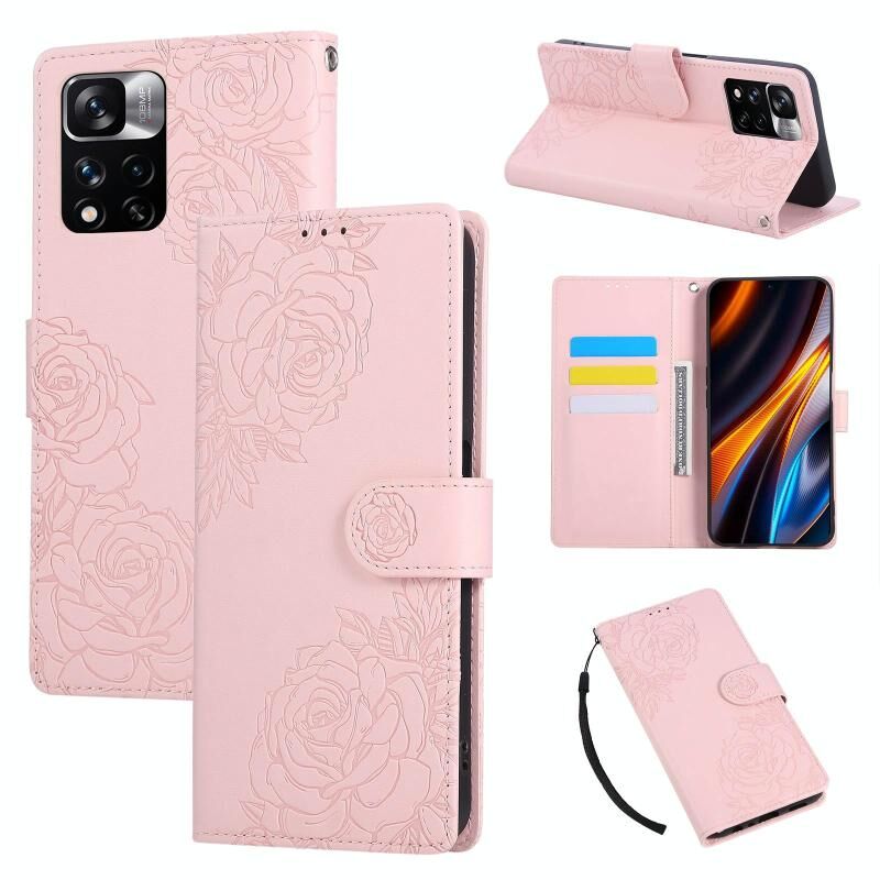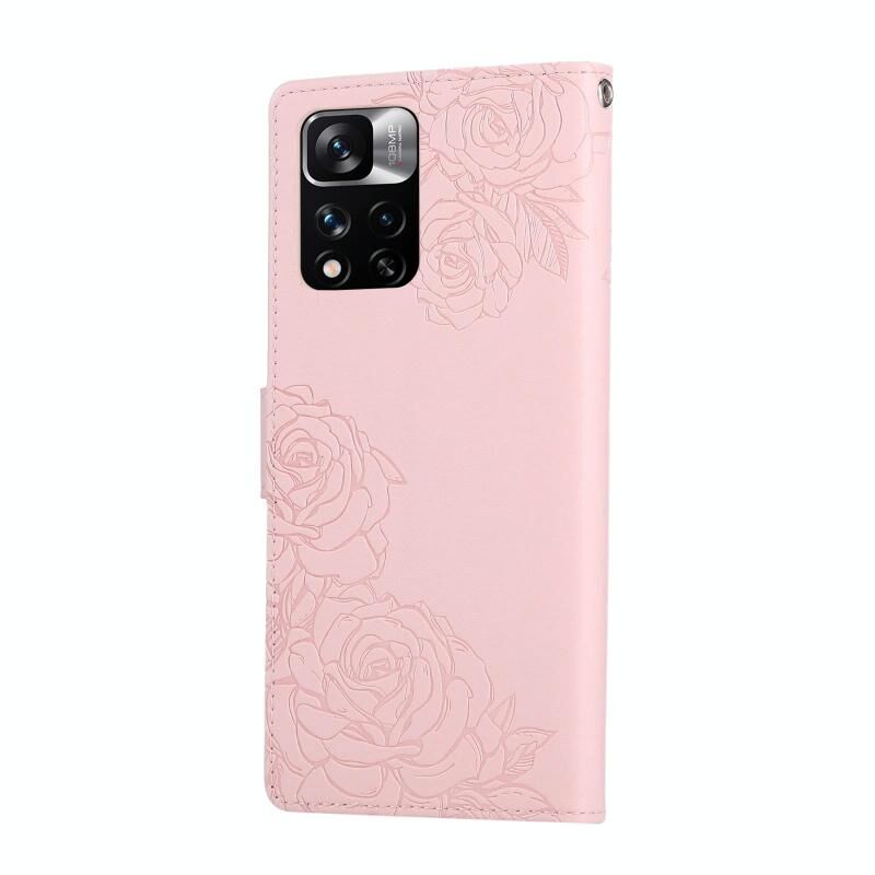 For Redmi Note 11 Pro+ Rose Flower Embossed 3-Card Slots Leather Phone Case(Pink)