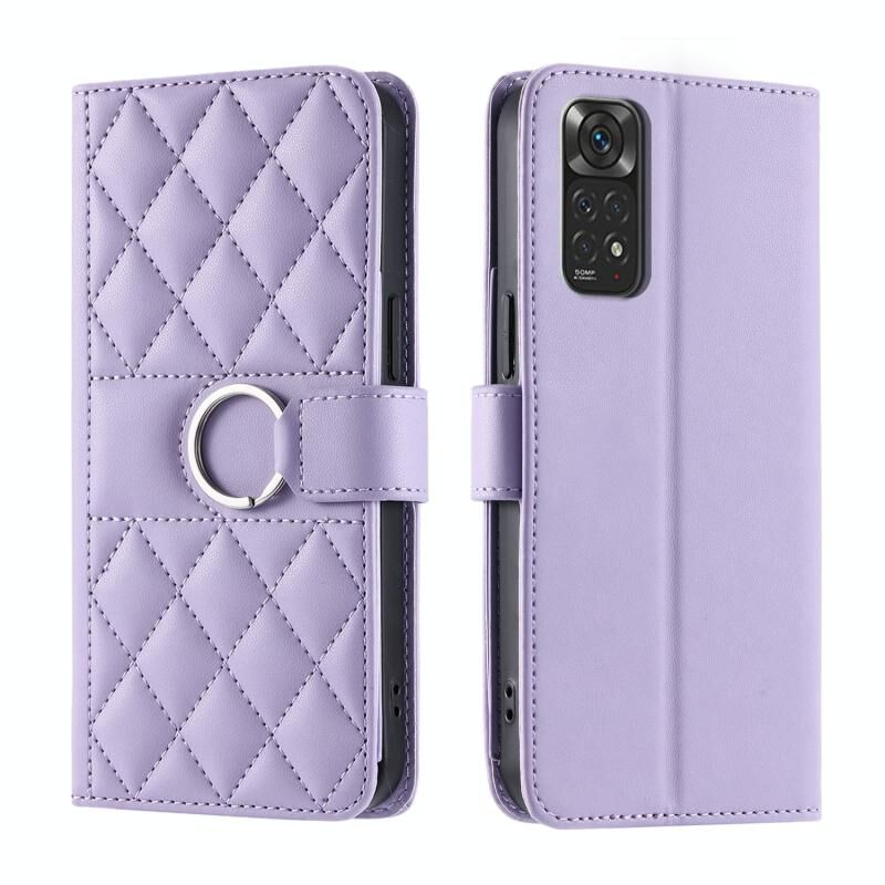 Για Redmi Note 11S / 11 4G Παγκόσμια δαχτυλίδι πόρπη Rhombic δέρμα τηλέφωνο υπόθεση (μωβ)