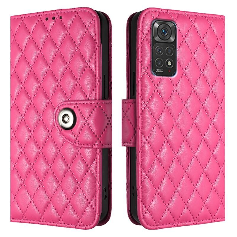 Για Redmi Note 11S 5G Rhombic υφή Flip δέρμα τηλέφωνο υπόθεση με κορδόνι (Rose Red)