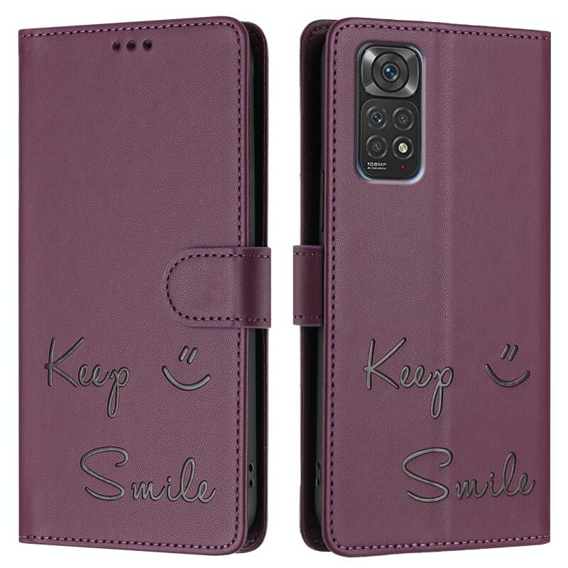 Για Redmi Note 11S 5G Χαμόγελο ανάγλυφο RFID δερμάτινη θήκη τηλεφώνου (Violet)