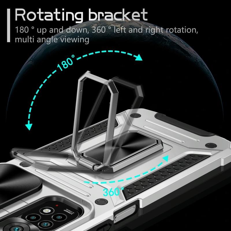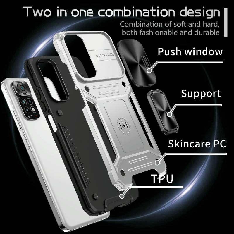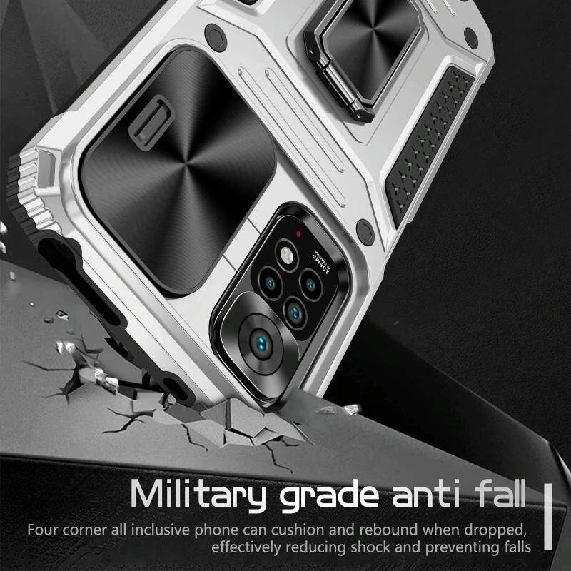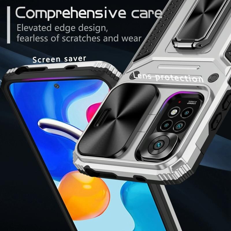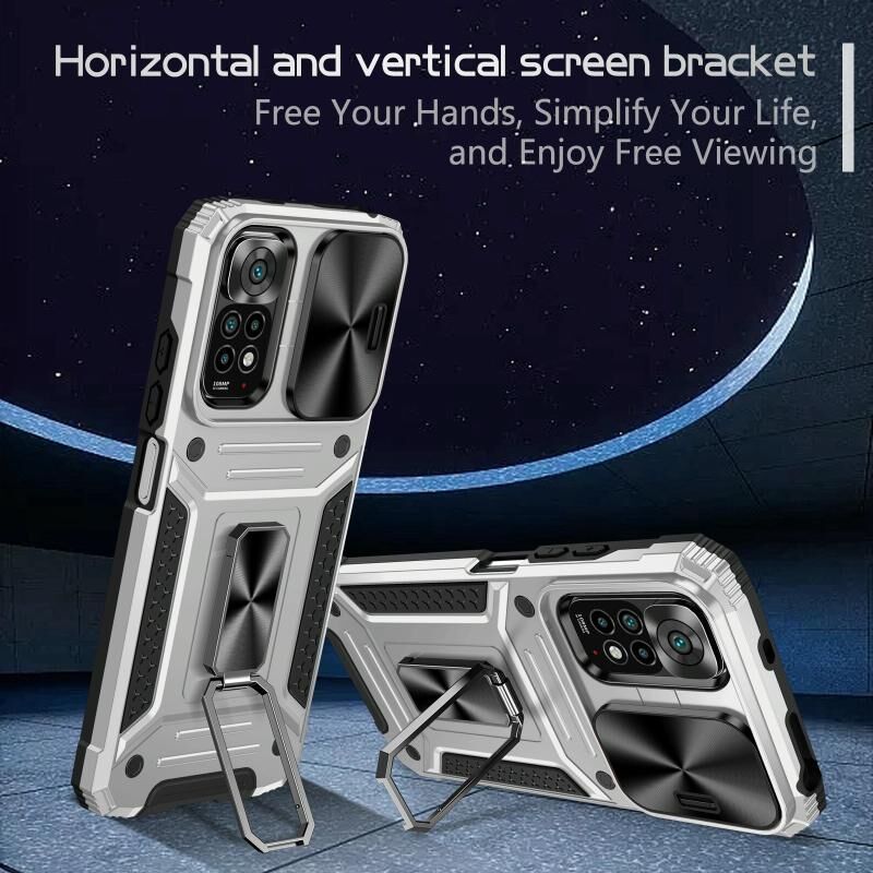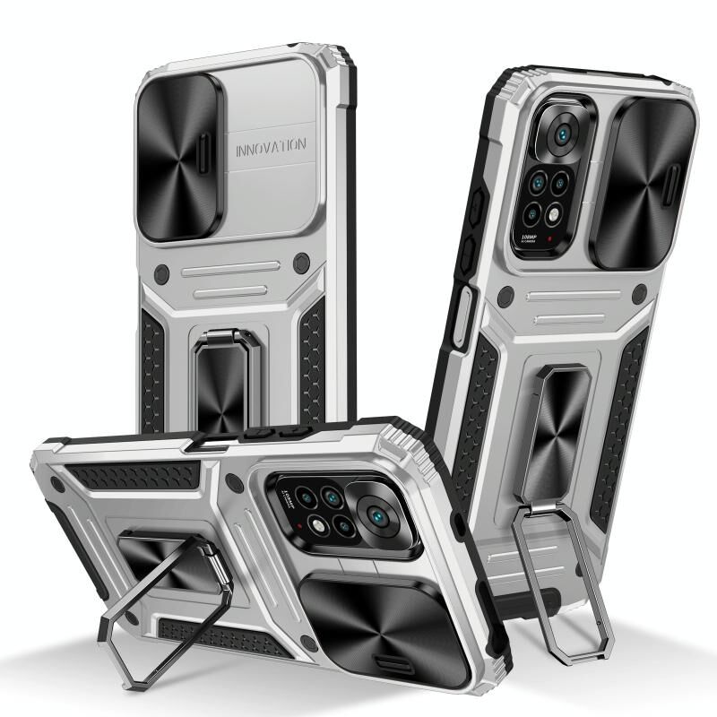 Για Redmi Σημείωση 11S Παγκόσμια Camshield ρομπότ TPU υβριδικό PC τηλέφωνο υπόθεση (Ασημί)