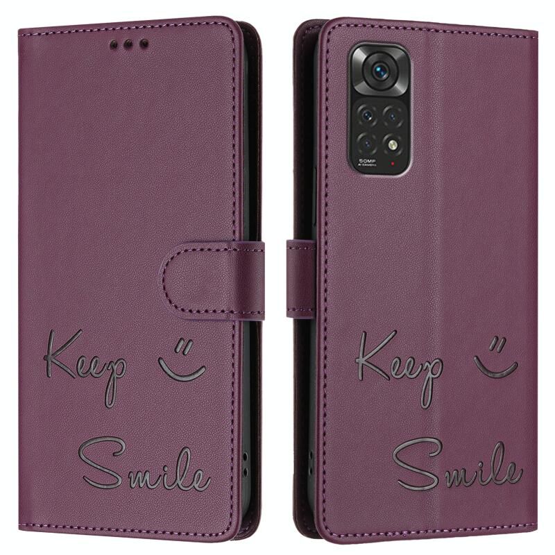 Για Redmi Note 11S / Σημείωση 11 Παγκόσμια χαμόγελο ανάγλυφο RFID δερμάτινη θήκη τηλεφώνου (Violet)
