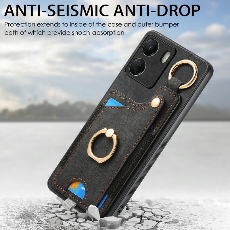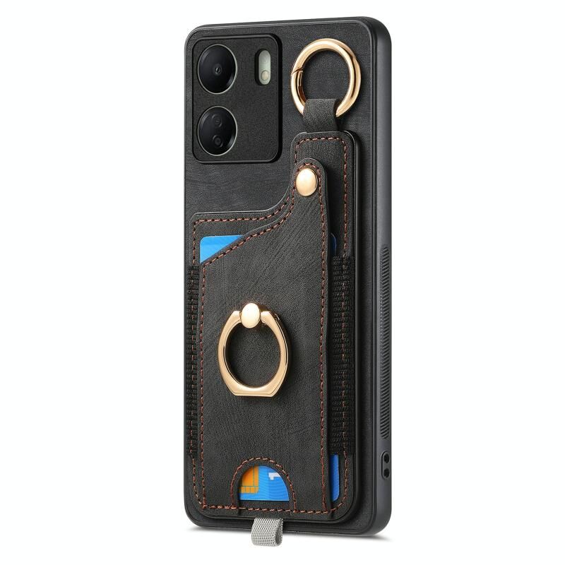 Για Redmi Σημείωση 11S Ρετρό δέρμα αίσθηση δαχτυλίδι κάρτα τσάντα υπόθεση τηλεφώνου με Hang Loop (Μαύρο)