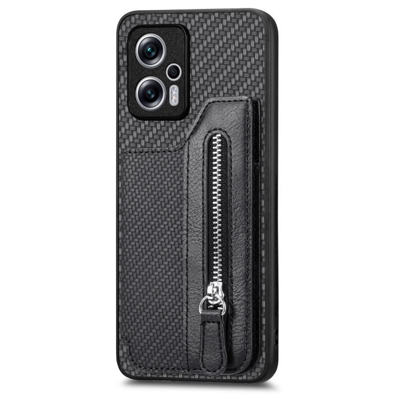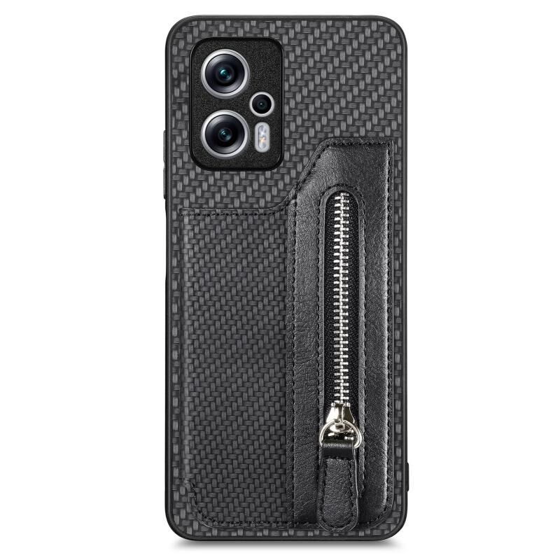 Για Redmi Note 11T Pro 5G Carbon Fiber οριζόντια Flip φερμουάρ πορτοφόλι τηλέφωνο υπόθεση (μαύρο)