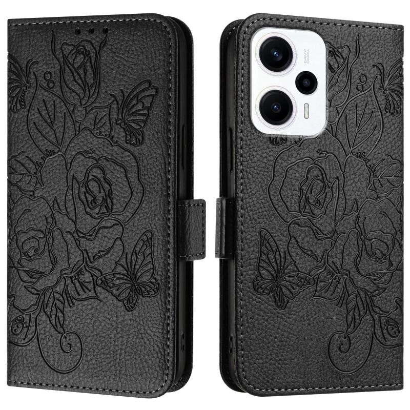 Για Redmi Σημείωση 11T Pro + / Σημείωση 12T Pro / K50i ανάγλυφο Rose RFID αντικλεπτική δερμάτινη θήκη τηλεφώνου (Μαύρο)