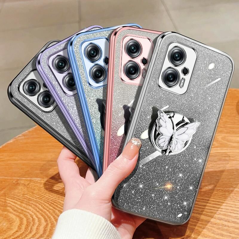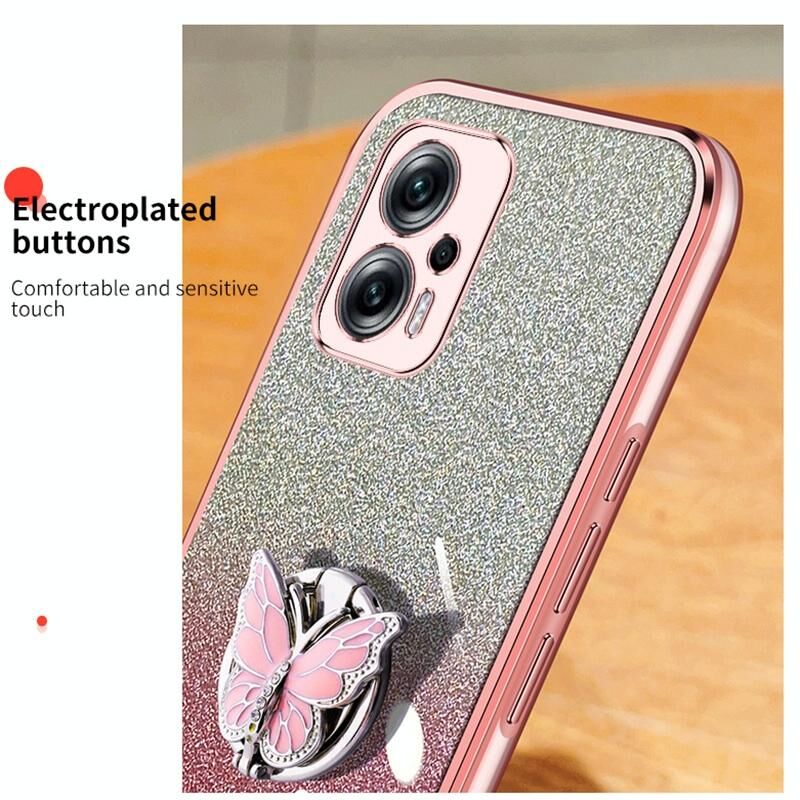 Για Redmi Σημείωση 11T Pro Επιμεταλλωμένο διαβάθμιση Glitter πεταλούδα κάτοχος TPU τηλέφωνο θήκη (Μπλε Σιέρα)