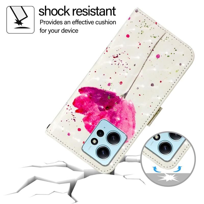 Θήκη τηλεφώνου δερμάτινη με οριζόντιο άνοιγμα και τρισδιάστατη ζωγραφική για Redmi Note 12 4G Global (Λουλούδι)