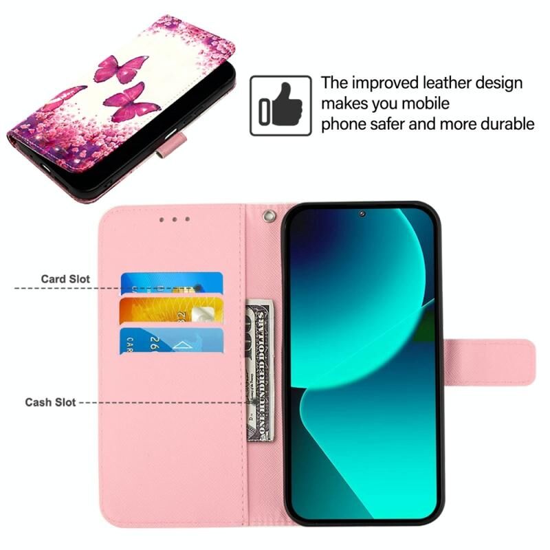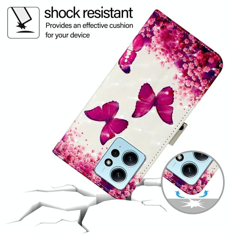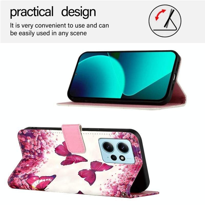 Θήκη τηλεφώνου δερμάτινη, οριζόντια αναδίπλωση, με τρισδιάστατη ζωγραφική για Redmi Note 12 4G Global (Ροζ Πεταλούδα)