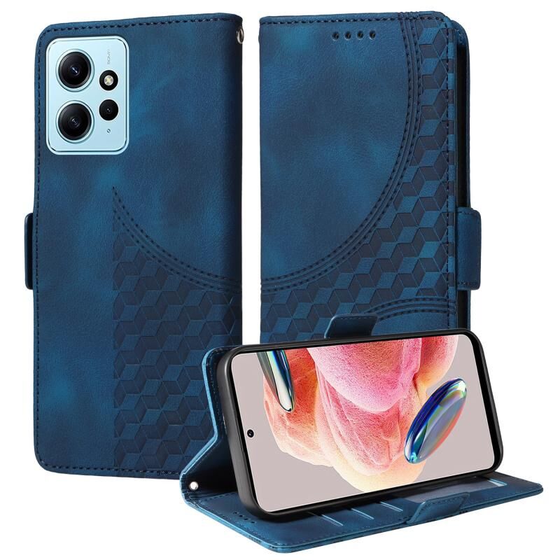 Θήκη τηλεφώνου από δέρμα με ανάγλυφο ρόμβο και αστρικό σχέδιο για Redmi Note 12 4G Global (Μπλε)