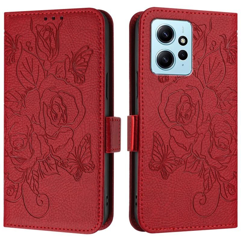 Για Redmi Σημείωση 12 4G Παγκόσμια ανάγλυφο Rose RFID Anti-theft Δερμάτινη θήκη τηλεφώνου (κόκκινο)