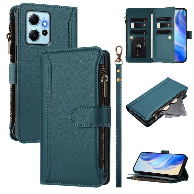 Για Redmi Note 12 4G Global Μαγνητικό Κλείσιμο 9 Θήκες Κάρτας Δερμάτινη Θήκη με Φερμουάρ και Λουρί Χεριού (Σκούρο πράσινο)