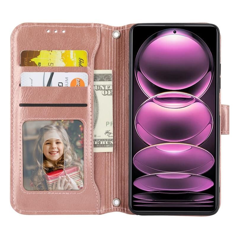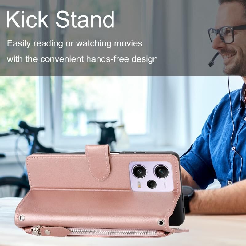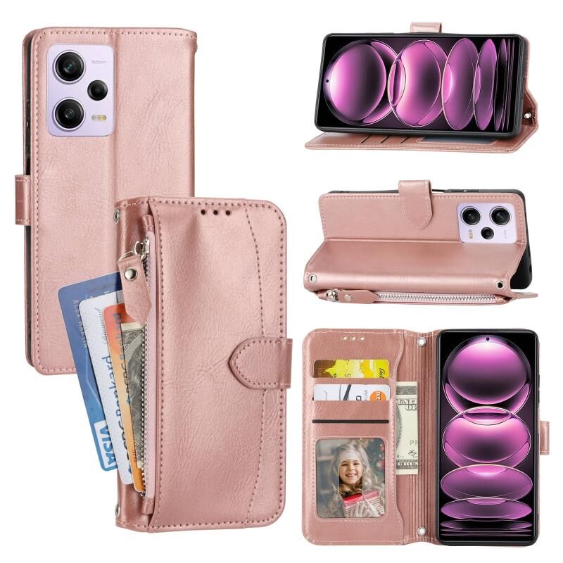 Για Redmi Σημείωση 12 4G Παγκόσμια πετρελαίου δέρμα φερμουάρ πορτοφόλι δερμάτινη θήκη τηλεφώνου (Rose Gold)
