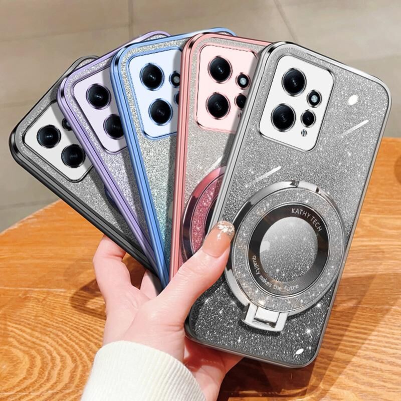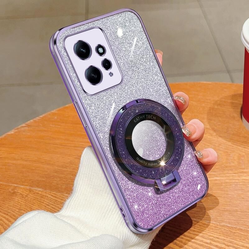 Για Redmi Σημείωση 12 4G Παγκόσμια επιμεταλλωμένη διαβάθμιση Glitter Γύρος κάτοχος TPU τηλέφωνο υπόθεση (μωβ)