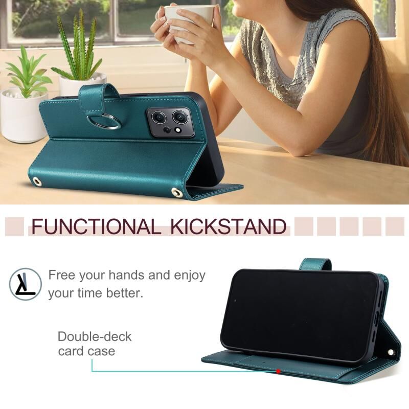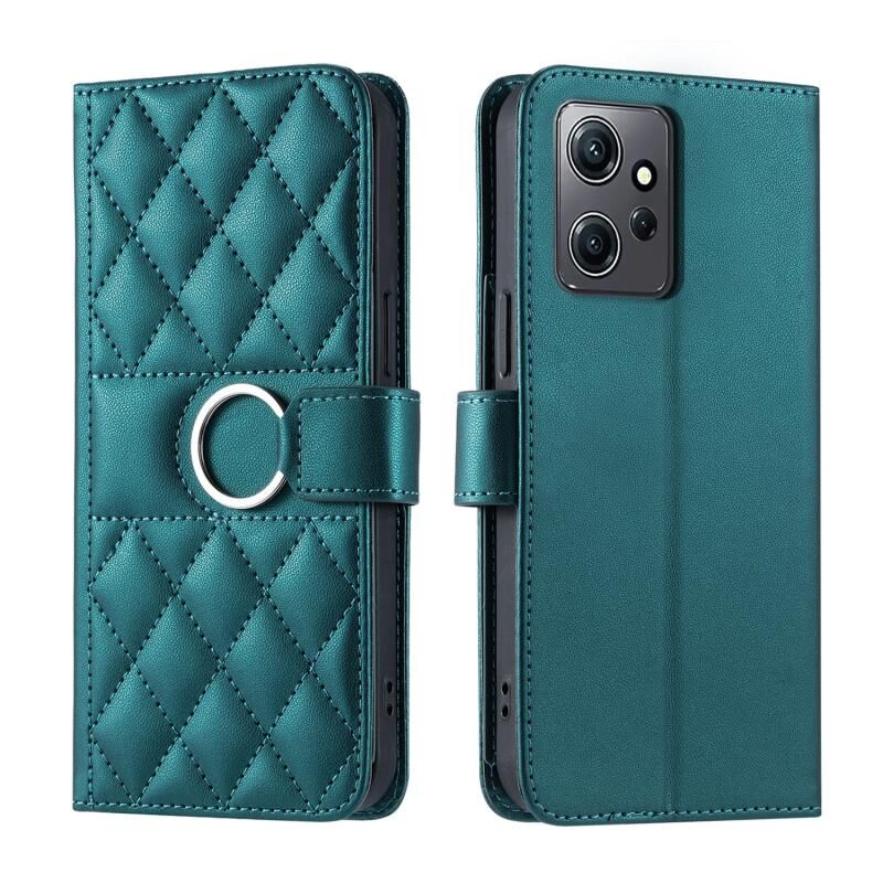 Για Redmi Σημείωση 12 4G Παγκόσμια δαχτυλίδι πόρπη Rhombic δέρμα τηλέφωνο υπόθεση (πράσινο)