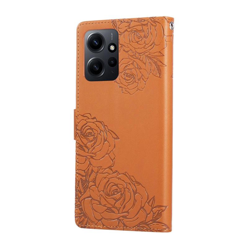 For Redmi Note 12 4G Global Rose Flower Embossed 3-Card Slots Leather Phone Case(Brown)