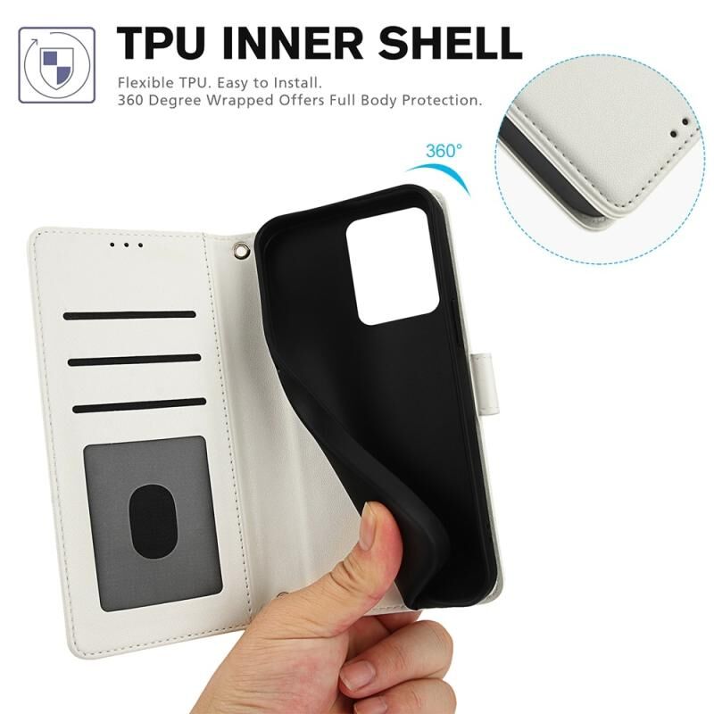 Για Redmi Note 12 4G Global Skin Feel Pure Color Card Slots δερμάτινη θήκη τηλεφώνου με διπλό κορδόνι (Λευκό)