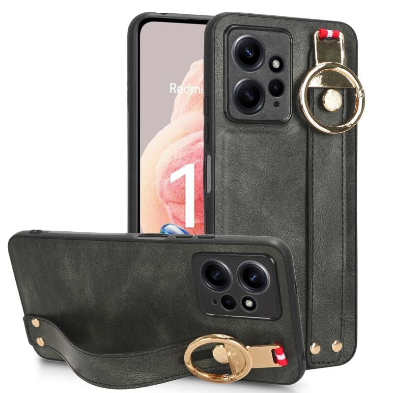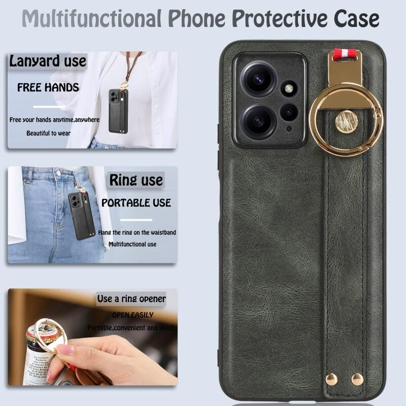 Για Redmi Note 12 4G Παγκόσμια Wristband δέρμα πίσω τηλέφωνο υπόθεση (πράσινο)