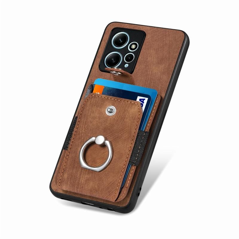 Για Redmi Σημείωση 12 4G Ρετρό δέρμα αίσθηση δαχτυλίδι κάρτα πορτοφόλι τηλέφωνο υπόθεση (καφέ)