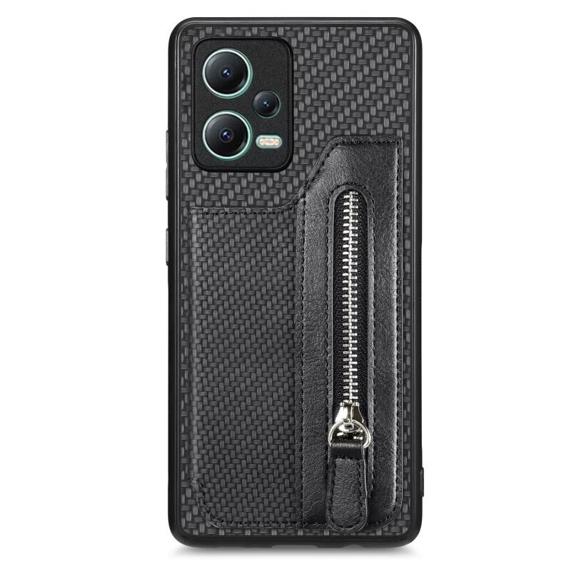 Για Redmi Σημείωση 12 5G ινών άνθρακα οριζόντια Flip φερμουάρ πορτοφόλι τηλέφωνο υπόθεση (μαύρο)