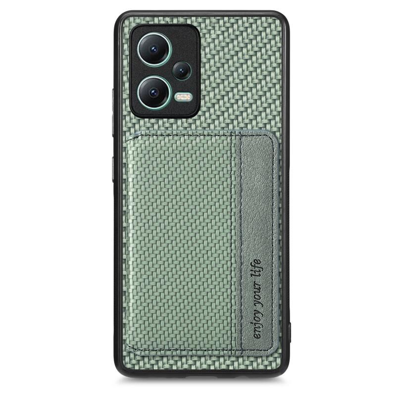 Για Redmi Σημείωση 12 5G ινών άνθρακα Μαγνητική κάρτα τσάντα τηλέφωνο υπόθεση (πράσινο)