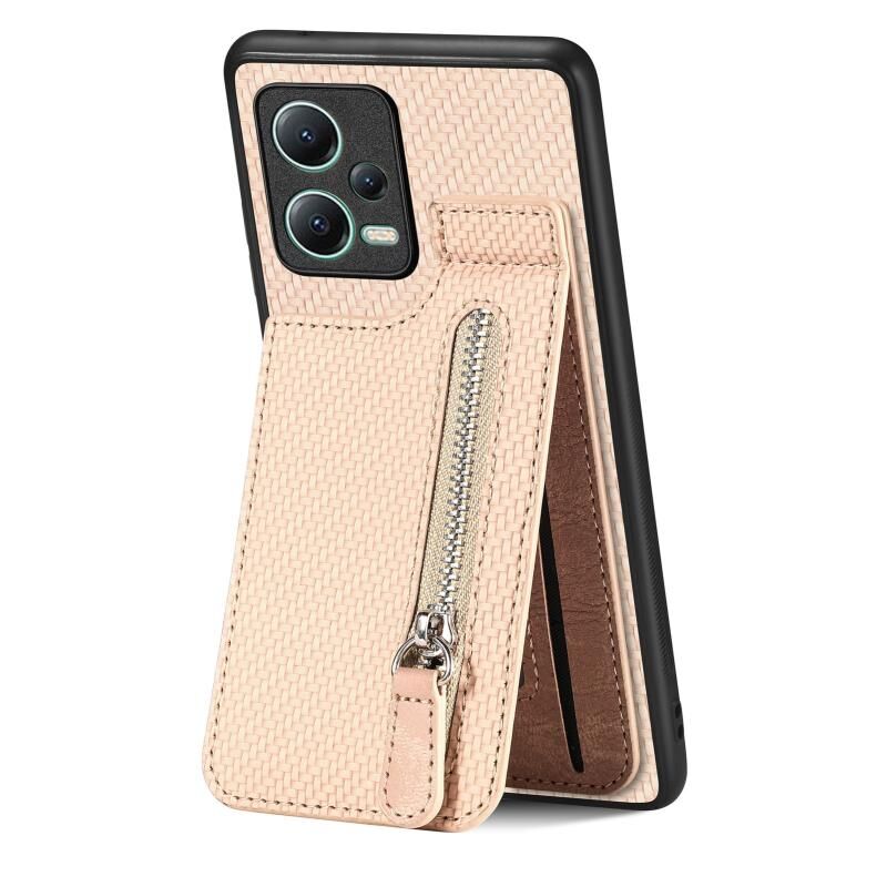 Για Redmi Note 12 5G Carbon Fiber Κάθετη Flip φερμουάρ τηλέφωνο υπόθεση (Χακί)