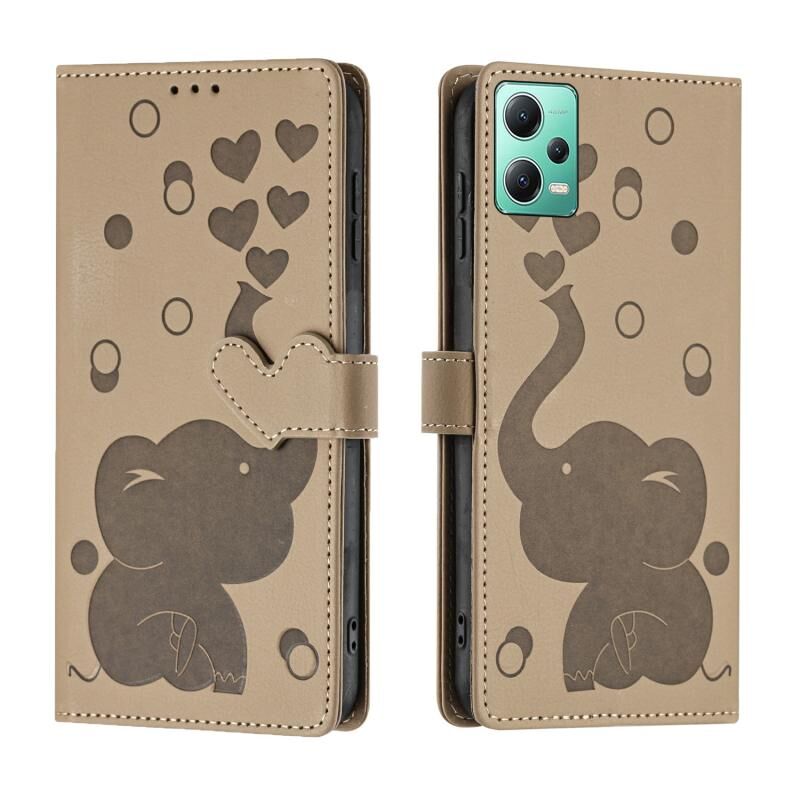 Θήκη τηλεφώνου από δέρμα με ανάγλυφο σχέδιο καρτούν ελέφαντα για Redmi Note 12 5G (Μπλε)