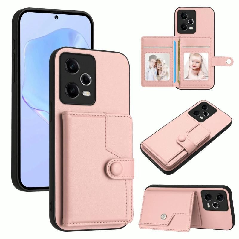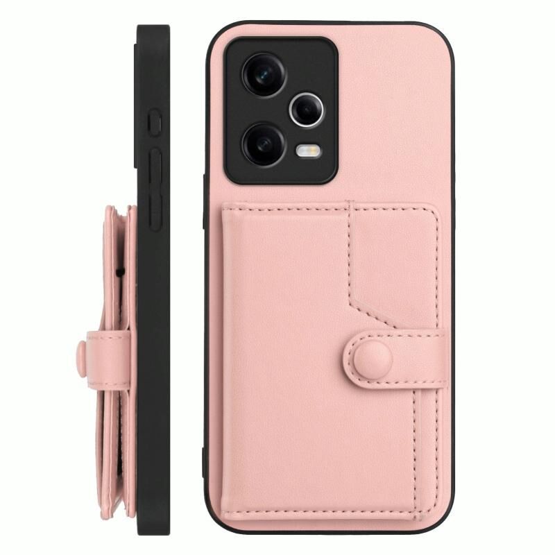 Για Redmi Σημείωση 12 5G Παγκόσμια κάρτα Button τσάντα RFID Anti-theft τηλέφωνο υπόθεση (ροζ)