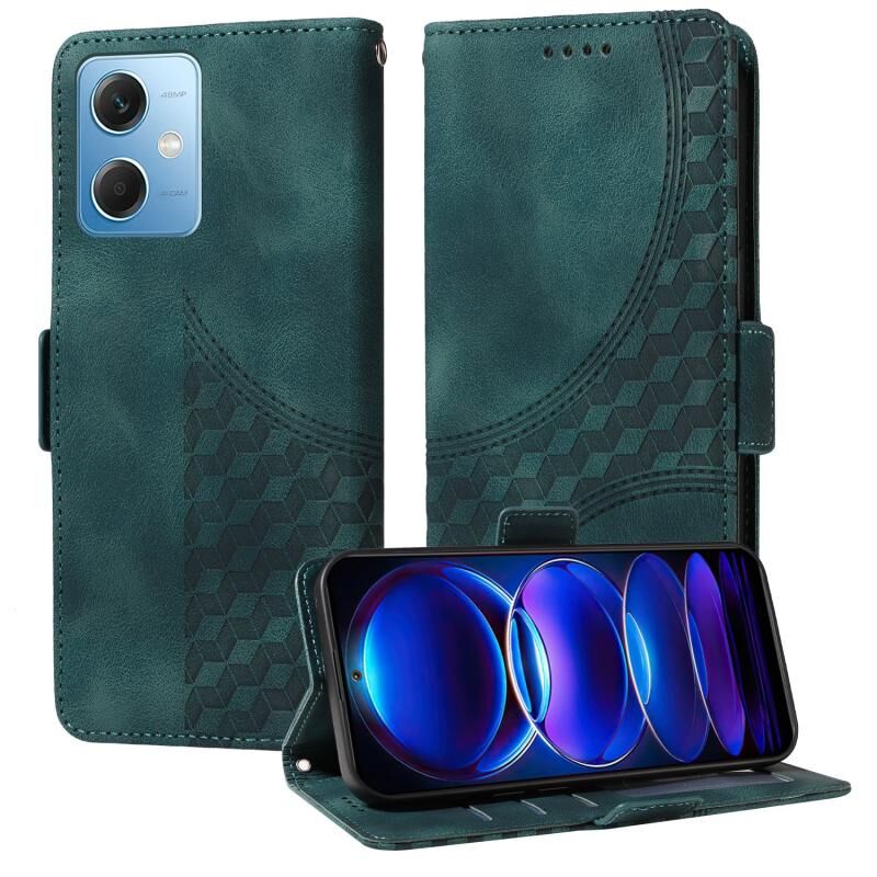 Θήκη τηλεφώνου από δέρμα με ανάγλυφο ρόμβο και αστρικό σχέδιο για Redmi Note 12 5G Global (Πράσινο)