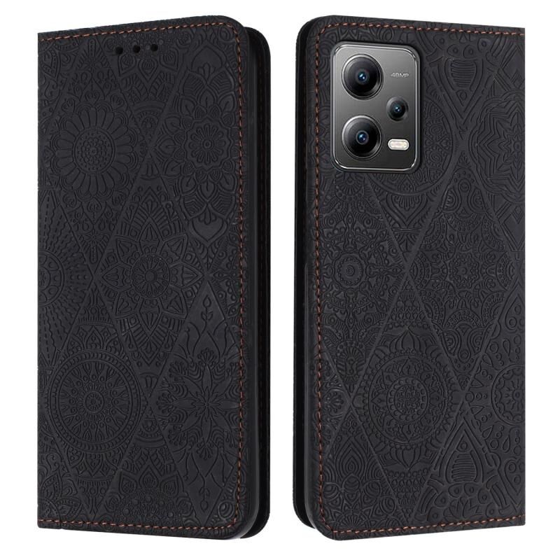 Για Redmi Σημείωση 12 5G Παγκόσμια Ethnic ανάγλυφο προσρόφηση δερμάτινη θήκη τηλεφώνου (μαύρο)