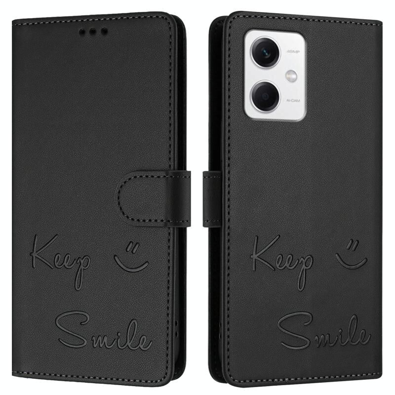 Για Redmi Σημείωση 12 5G Παγκόσμια / Ινδία Χαμόγελο ανάγλυφο RFID δερμάτινη θήκη τηλεφώνου (Μαύρο)