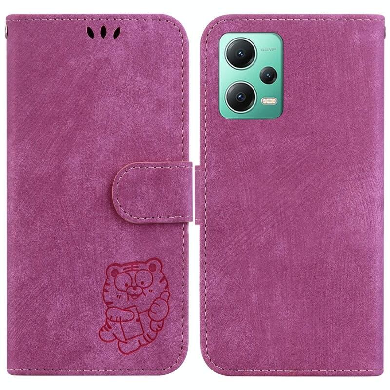 Για Redmi Note 12 5G Global Θήκη Δέρματος με Χαρακτικό Little Tiger (Ροζ Κόκκινο)