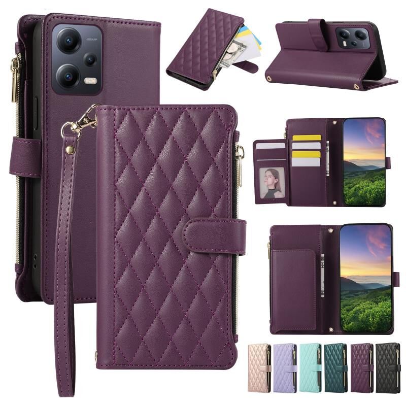 Για Redmi Σημείωση 12 5G Παγκόσμια Rhombic φερμουάρ πορτοφόλι δερμάτινη θήκη τηλεφώνου (Deep Purple)