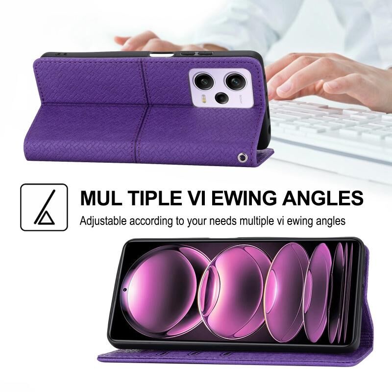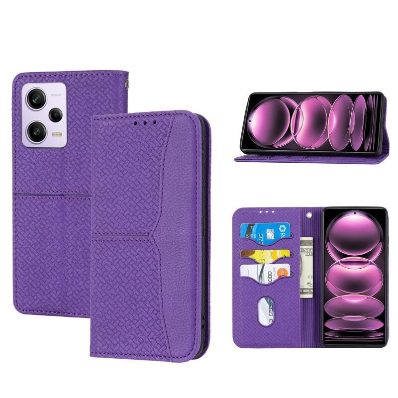 Για Redmi Σημείωση 12 5G Παγκόσμια Υφαντά υφή ραφή μαγνητική υπόθεση τηλέφωνο δέρμα (μωβ)