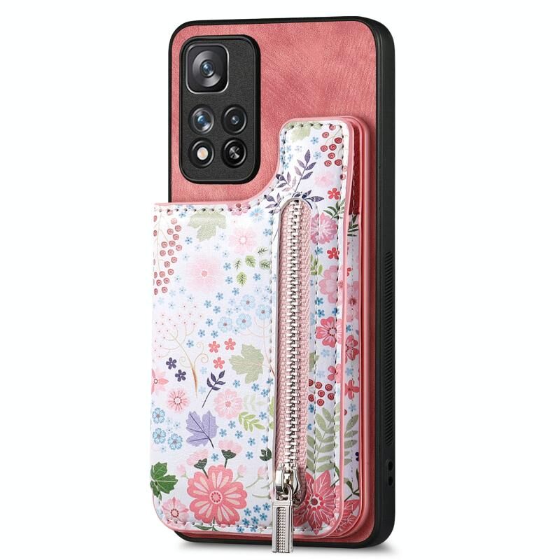 Για Redmi Σημείωση 12 5G Ρετρό ζωγραφισμένο φερμουάρ πορτοφόλι πίσω τηλέφωνο υπόθεση (ρόζ)