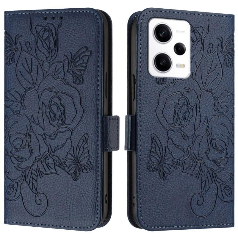 Για Redmi Note 12 Explorer ανάγλυφο Rose RFID Anti-theft δέρμα τηλέφωνο υπόθεση (σκούρο μπλε)