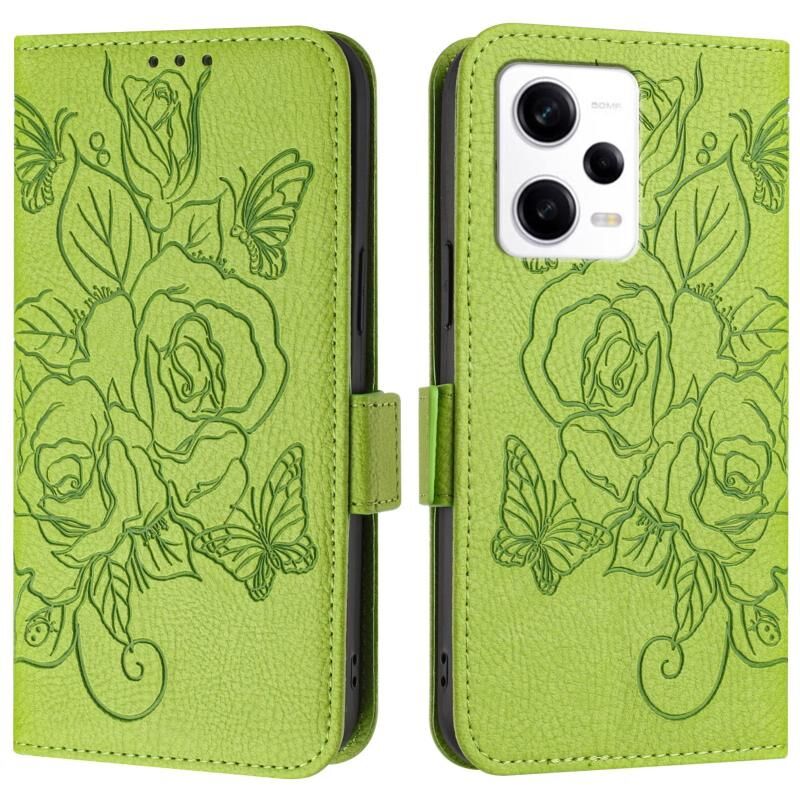 Για Redmi Note 12 Explorer ανάγλυφο Rose RFID Anti-theft δέρμα τηλέφωνο υπόθεση (Πράσινο)
