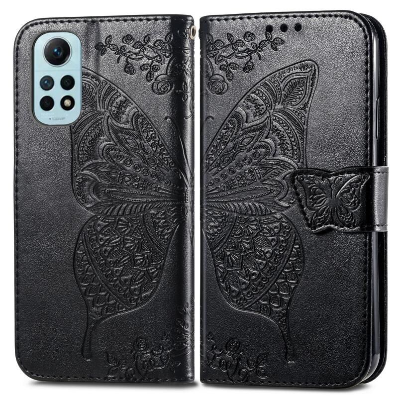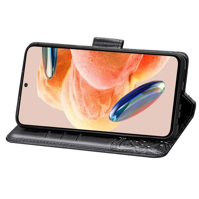 Θήκη τηλεφώνου από δέρμα με ανάγλυφο σχέδιο πεταλούδας και λουλουδιών για Redmi Note 12 Pro 4G (Μαύρο)