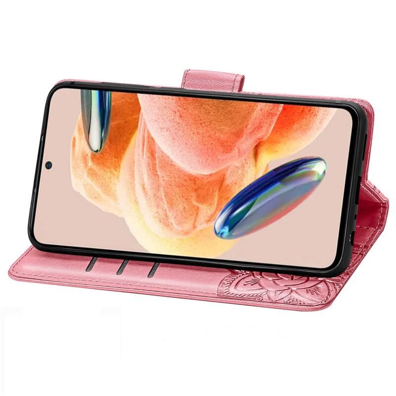 Θήκη τηλεφώνου από δέρμα με ανάγλυφο σχέδιο πεταλούδας και λουλουδιών για Redmi Note 12 Pro 4G (ρόζ)
