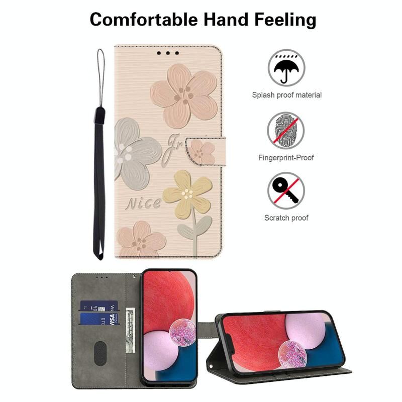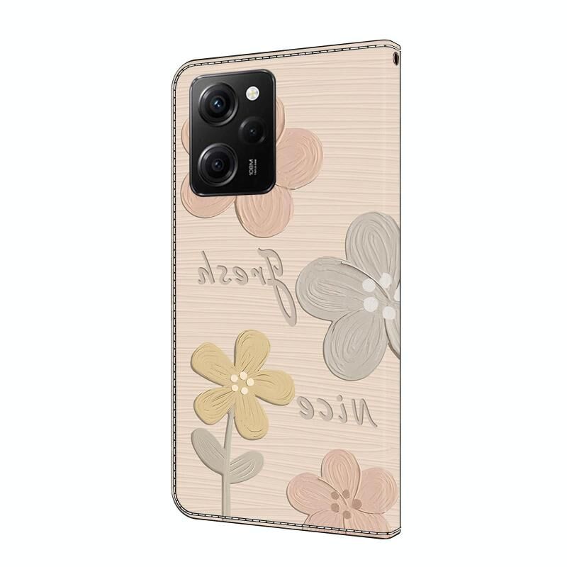 Θήκη τηλεφώνου από φρέσκο ​​βαμμένο δέρμα για Redmi Note 12 Pro 5G Global (Μπεζ Λουλούδια)