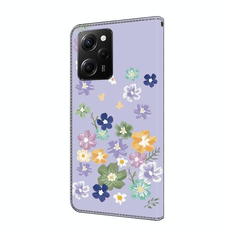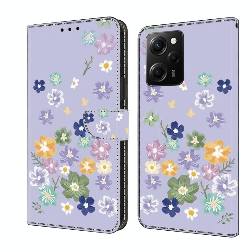 Θήκη τηλεφώνου από φρέσκο ​​βαμμένο δέρμα για Redmi Note 12 Pro 5G Global (Μωβ Λουλούδια Λαδιού)
