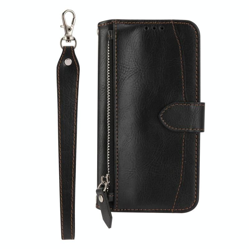 Για Redmi Σημείωση 12 Pro 5G Παγκόσμια πετρελαίου δέρμα φερμουάρ πορτοφόλι δερμάτινη θήκη τηλεφώνου (Μαύρο)