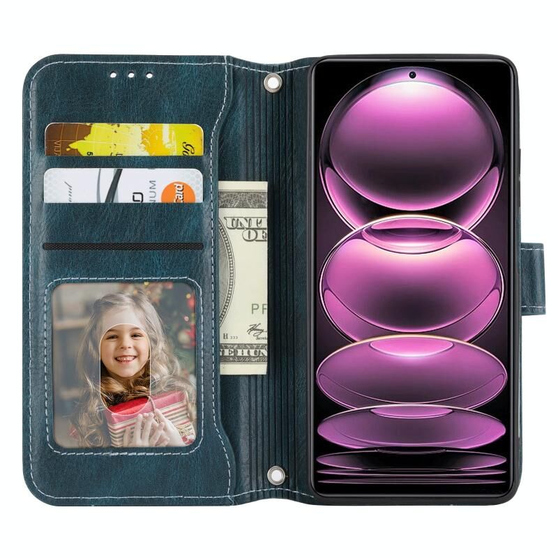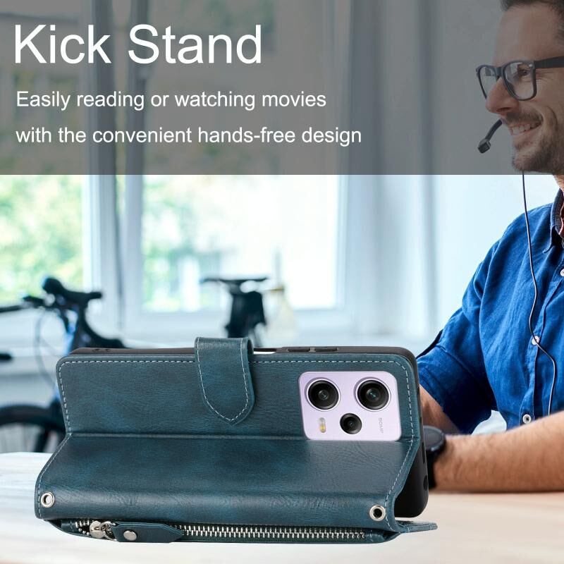 Για Redmi Σημείωση 12 Pro 5G Παγκόσμια πετρελαίου δέρμα φερμουάρ πορτοφόλι δερμάτινη θήκη τηλεφώνου (Μπλε)